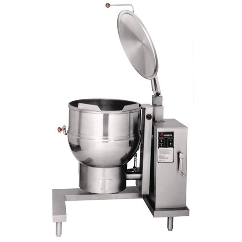 The groen tdb 7 is a table top tilting steam jacketed kettle with a thermostatically controlled self contained electrically heated steam supply and appropriate controls mounted on a sturdy base.
